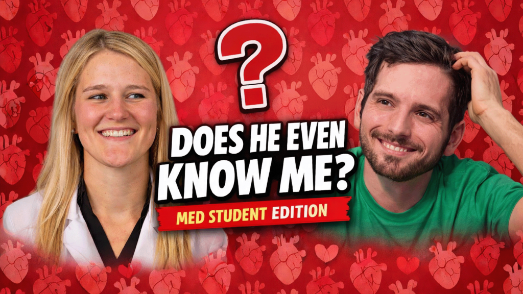 In this Valentine’s Day episode, four medical students sit down to play the ultimate compatibility game—answering questions their partners answered about them ahead of time. From whether they’re optimists or realists about med school (some hedging here), to what their dens would look like as animals (things got weird), these spouses and significant others prove they actually know their medical students pretty well. Mostly. There’s a Punsesee…Puncsa…Punxsutawney Phil appearance, some passionate love for hobby farms, and one unfortunate name mix-up to kick off the whole episode.